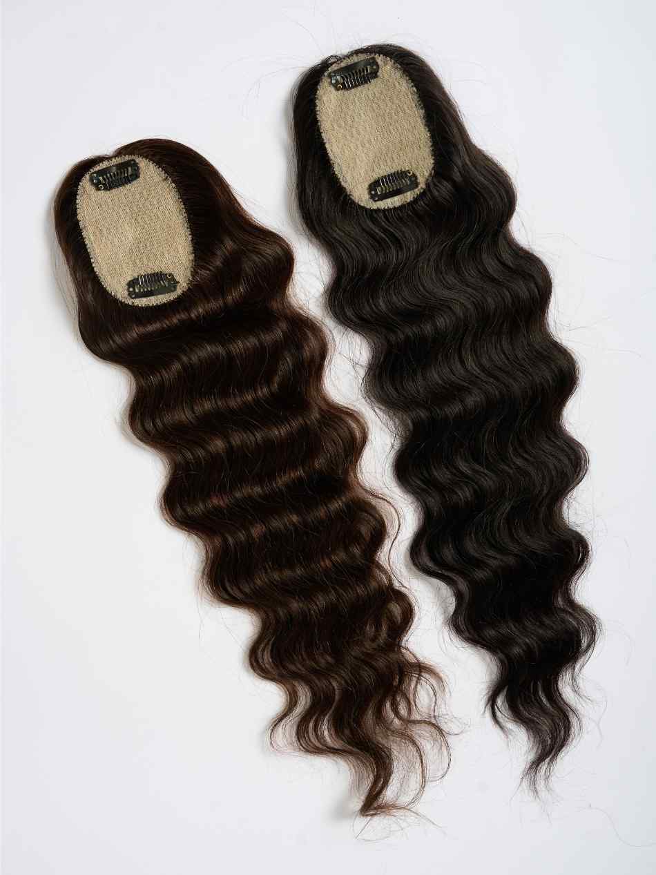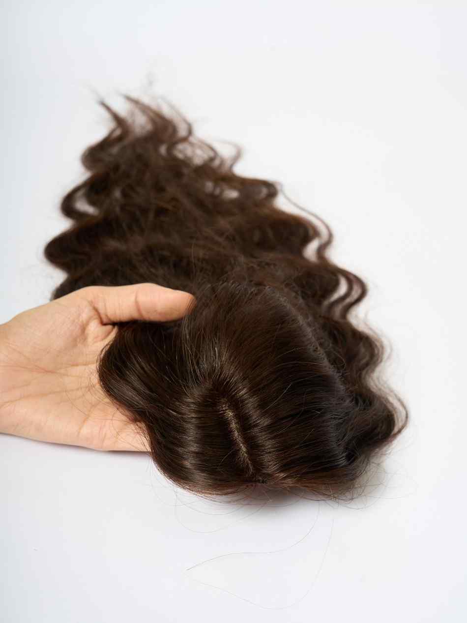 This is a wavy/ curvy variant of our scalp topper for people with wavy to naturally curly hair. Nish Hair Scalp Topper looks as real as it can be , it is one of our smallest hair toppers, that gives slight coverage and volume towards the sides. It is super useful if you have bald spots in front and provides coverage even for scanty or thin hair.