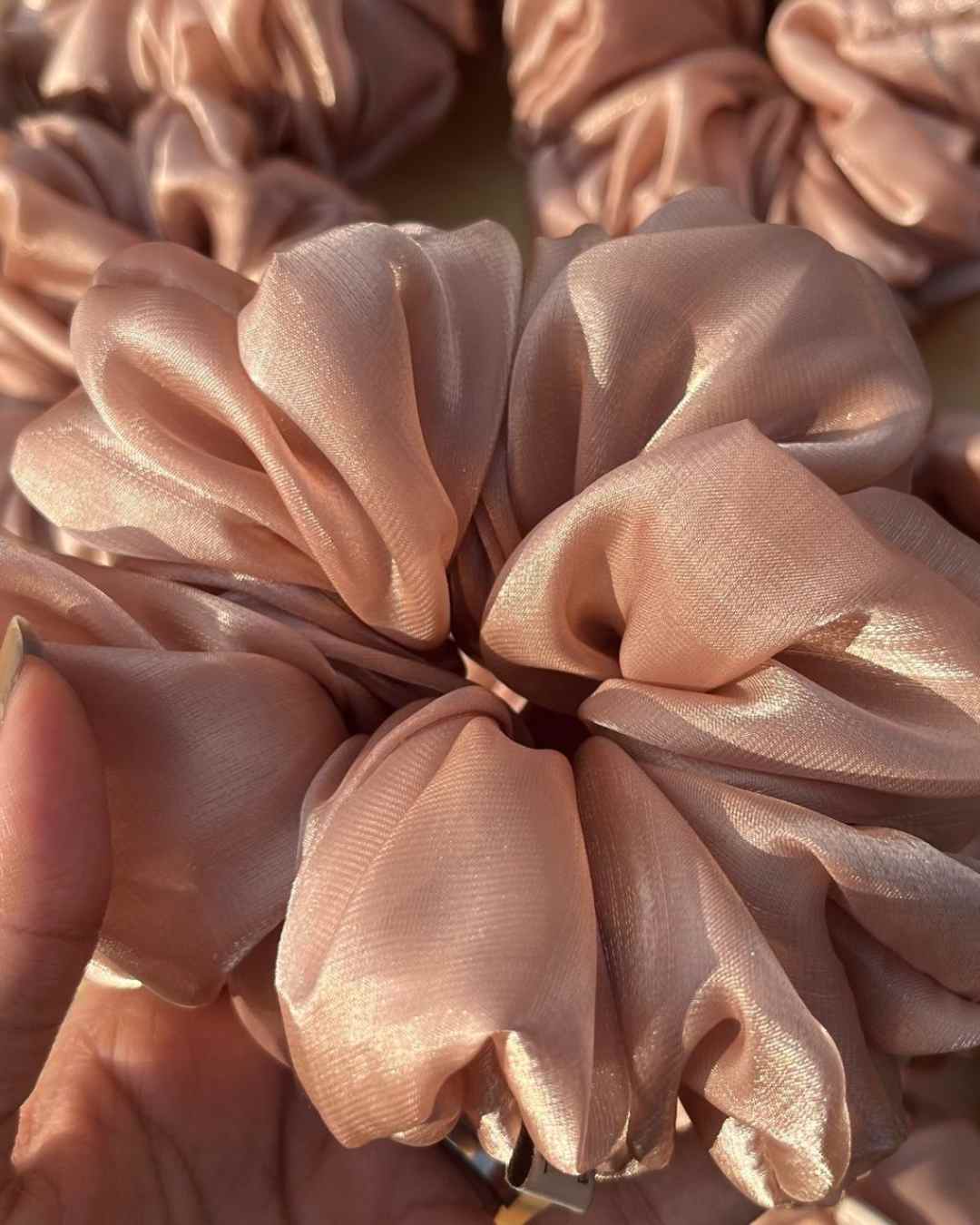 The Shimmer Pixie Scrunchie is made from premium organza fabric with a subtle shimmer and a glossy, glass-like finish for an elegant touch. Its smooth, slippery texture prevents breakage, making it anti-hair fall while locking in moisture for healthier hair. Designed for a secure yet gentle hold, it adds volume and shine without damage—perfect for everyday wear or special occasions!
