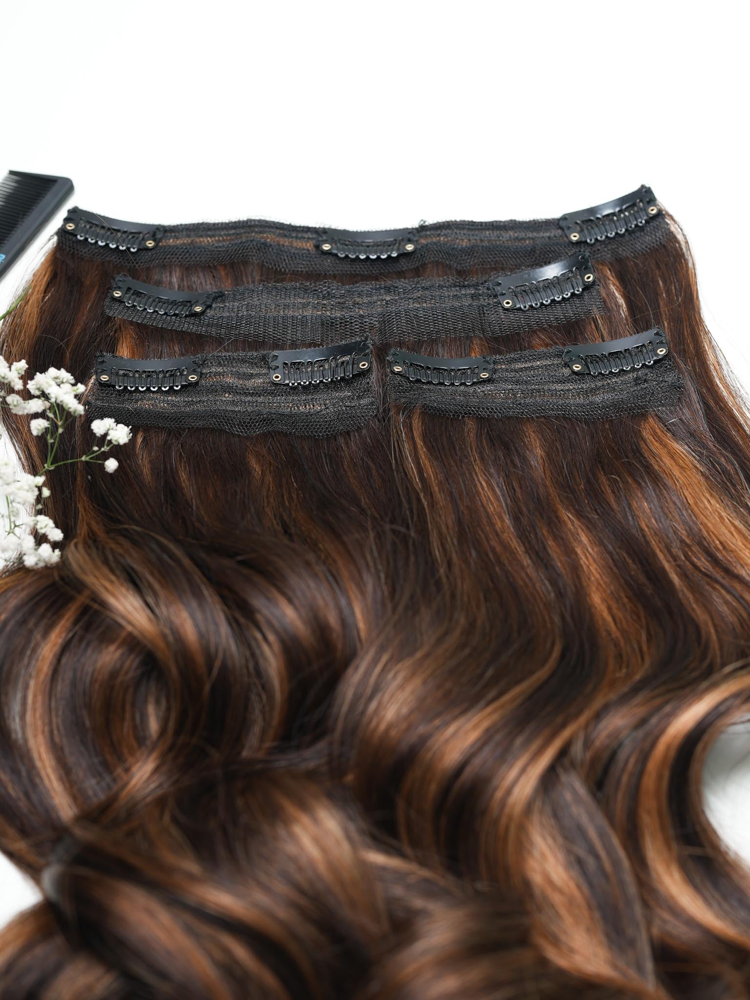 Dark Brown With Highlights – Classic Hair - CLIP In Extensions