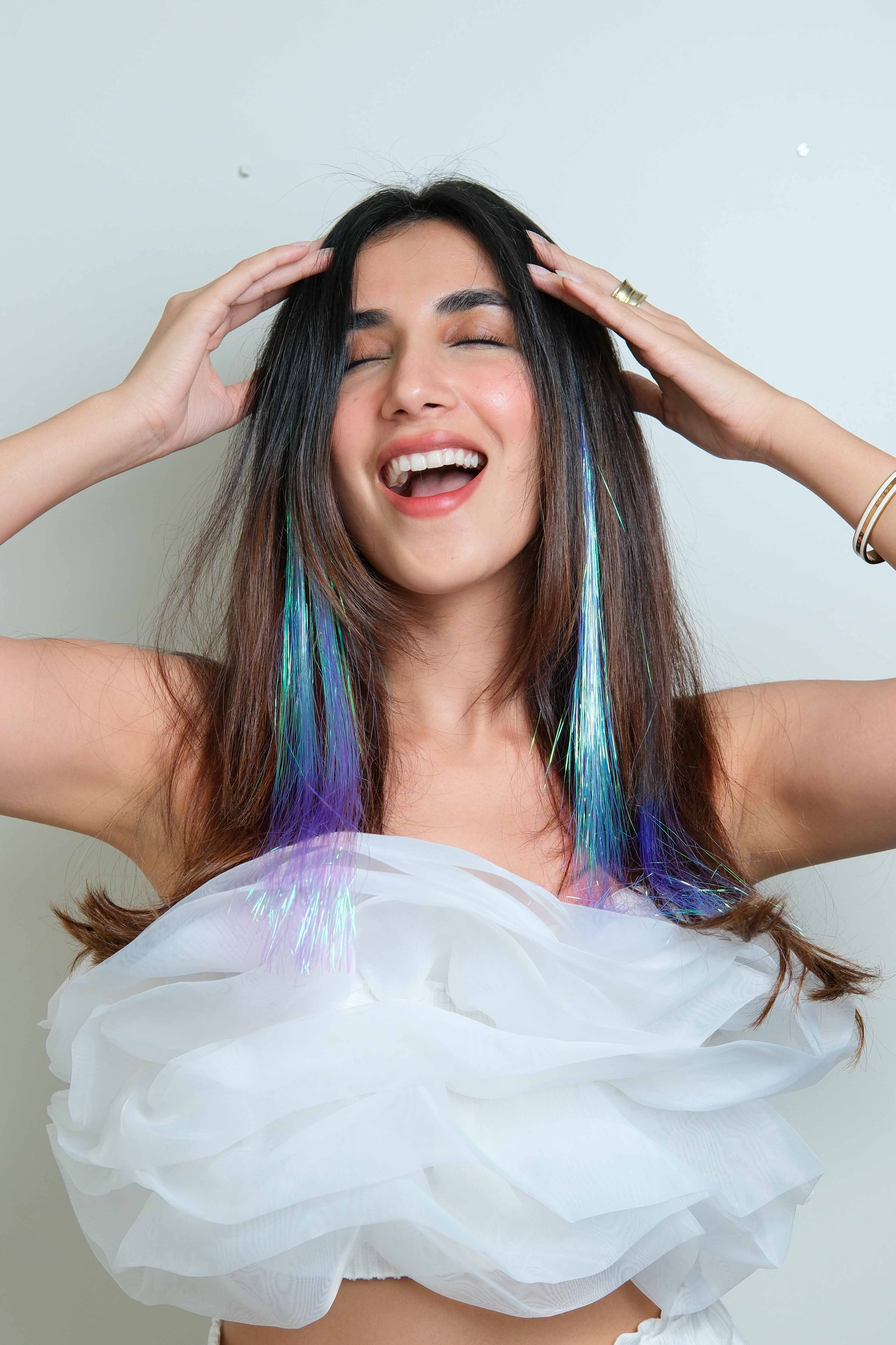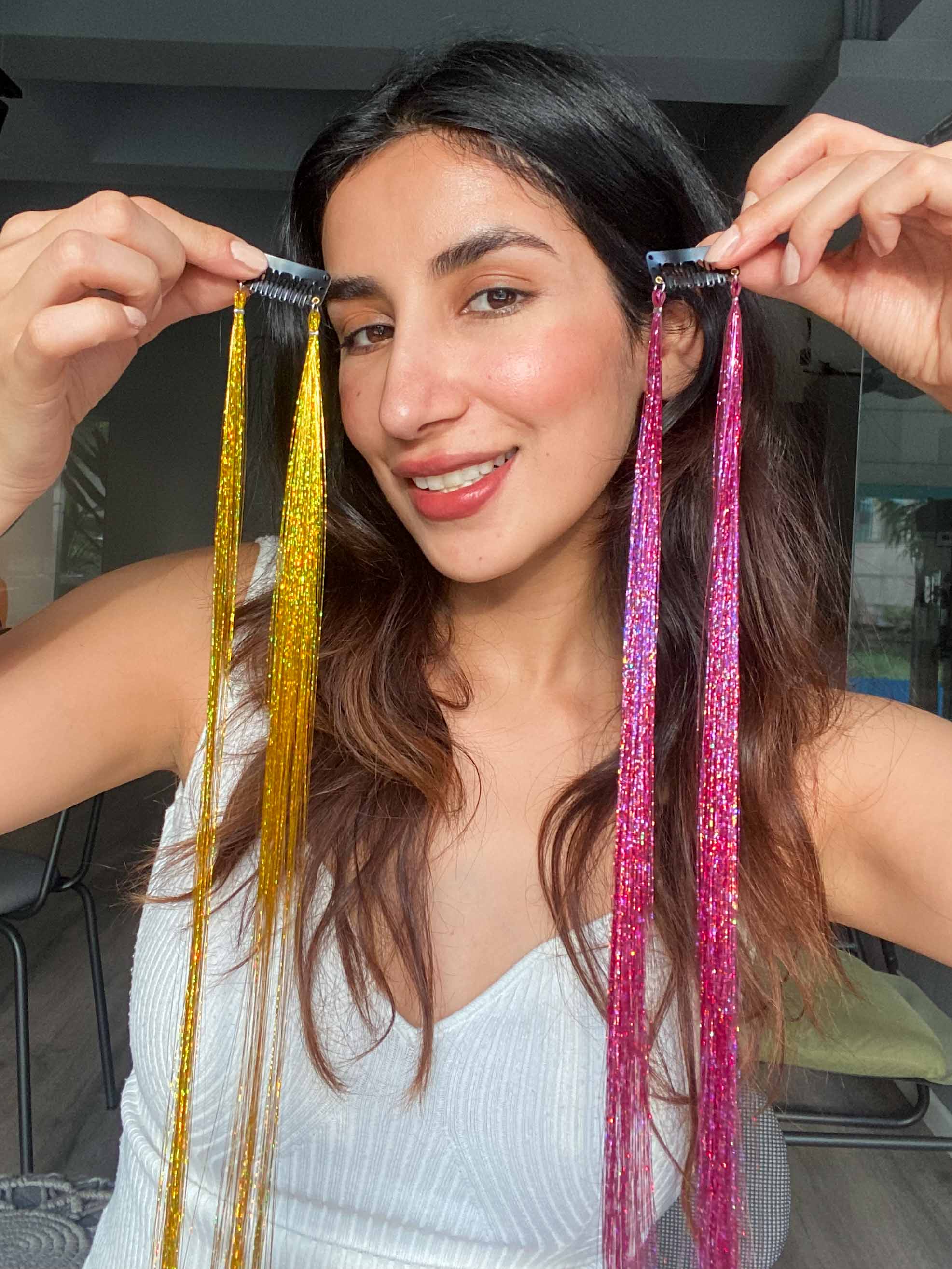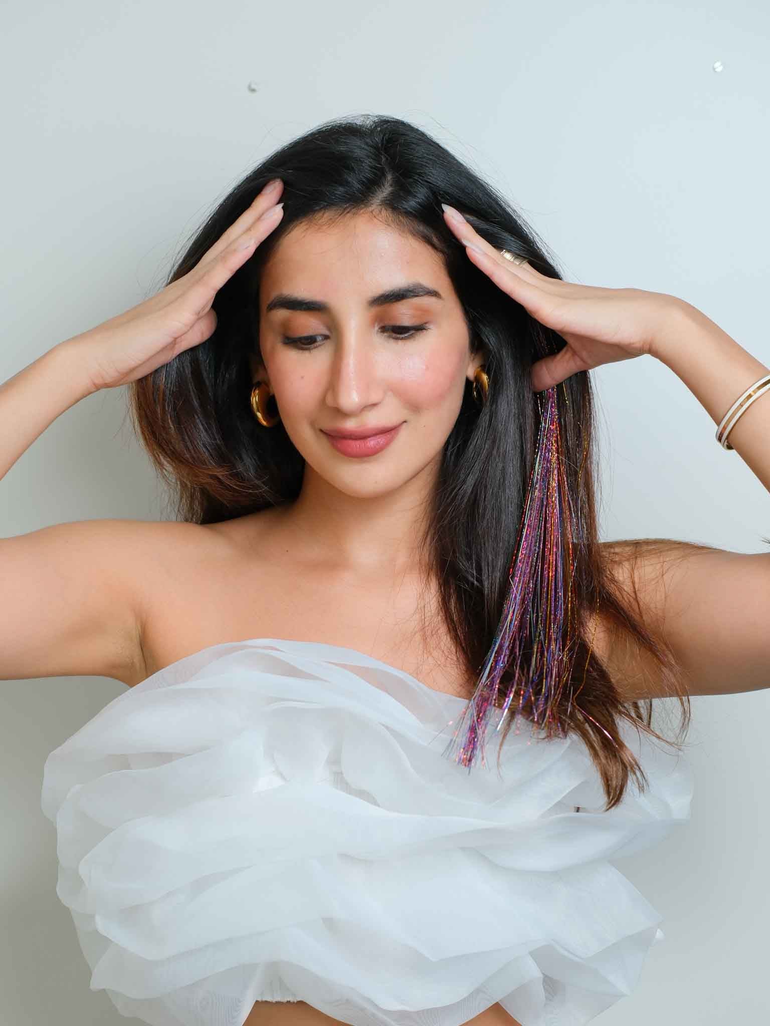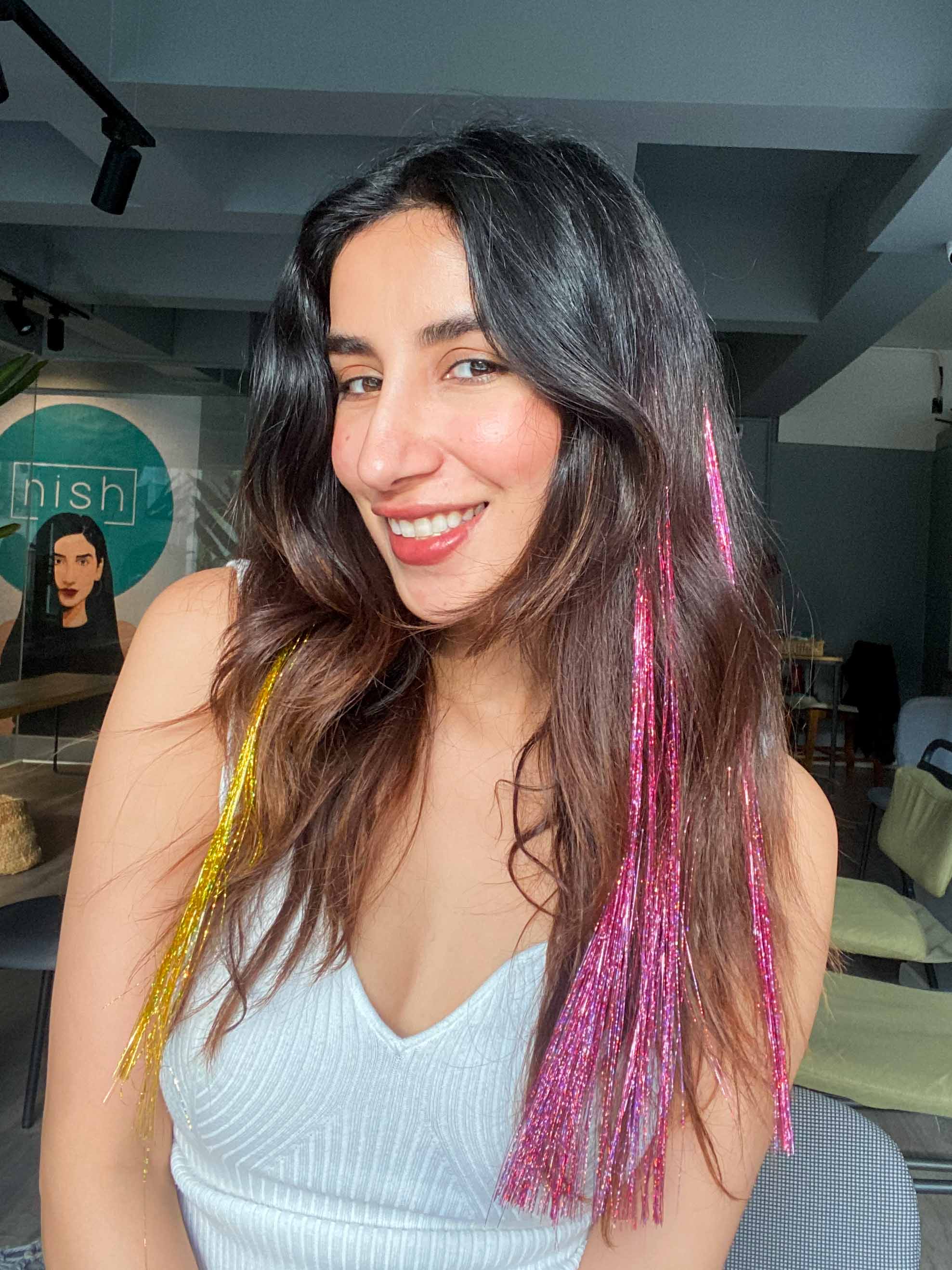 Get party ready with these easy to clip on tinsel strands. Shine bright ladies. #strandout with nish hair tinsels.